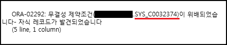 1. 에러 메시지에 나타난 제약조건 이름을 확인 한다.