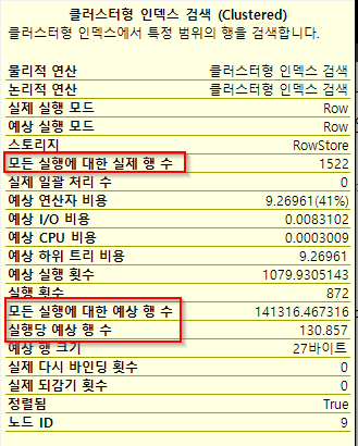 기존 '실제 행 수'가 '모든 실행에 대한 실제 행 수'로, 기존 '예상 행 수'가 '실행당 예상 행 수'로