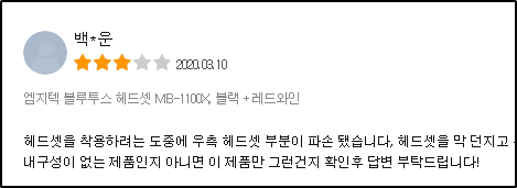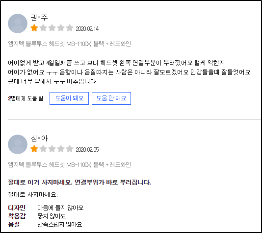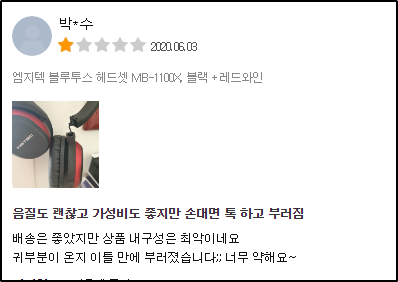 중국산 저가 헤드폰에서도 찾기 힘든 최악의 내구성으로 제품을 만들고 거창하게 광고만 하여 소비자를 기만하는 이런 회사는 더 이상 대한민국에서 없어 졌으면 좋겠습니다.