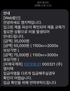 이 정도면 분명히 제조사 엠지텍에서 충분히 내용을 알고 있었을테고 내가 A/S 요청했을 때도 동일 문제라는 것을 분명히 알았을 것입니다. 그런데도 모른척 수리가 된다고 하다가 유상교체 입금 문자만 보낸 것이었습니다.