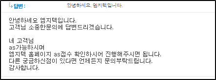 엠지텍 홈페이지에서 회원가입 후 수리가능한 지 게시판에 문의해보니 가능 하다고 해서 홈페이지에 안내된 대로 왕복 택배비 5천원 동봉해서 보냈습니다.