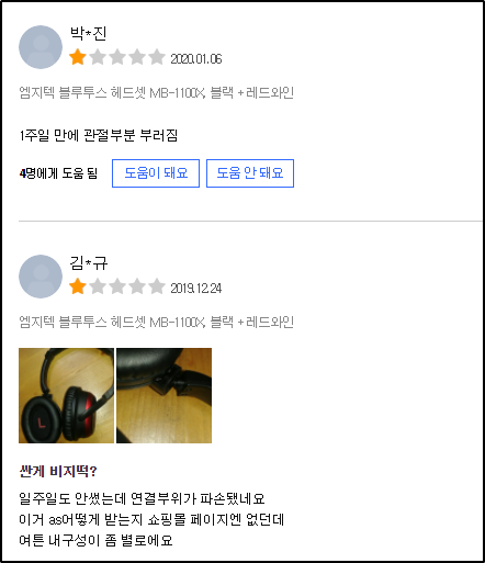 특히 마지막 구매자 사례는 저와 완전 복사판이라고 할 정도로 상황이 똑같습니다. 일단 저질 불량 제품을 팔아 놓고