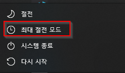이제 윈도우 시작 > 전원 버튼을 누르면 '최대 절전 모드' 항목이 나타나게 됩니다.