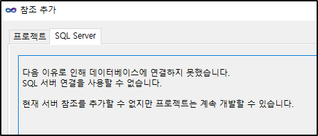 만약 연결된 DB 정보가 없이 참조 추가하려고 하면 다음과 같이 추가가 불가능합니다.