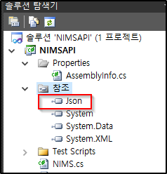 이제 NIMS.cs에 OpenAPI를 호출하고 결과를 MyJsonParser로 파싱 처리하는 소스를 작성하였습니다.