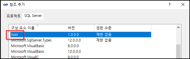 제가 만든 CLR에서 이 System.Net.Json.dll을 참조해야 하므로 다음과 같이 SQL 서버에 어셈블리 등록을 합니다.