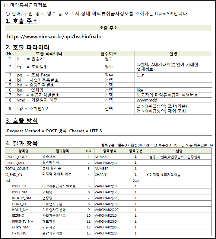 string Url = "https://www.nims.or.kr/api/bsshinfo.do";
