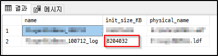 참고로 쿼리로 로그 테이블의 초기 사이즈를 확인하기 위해서는 다음과 같이 하면 됩니다.