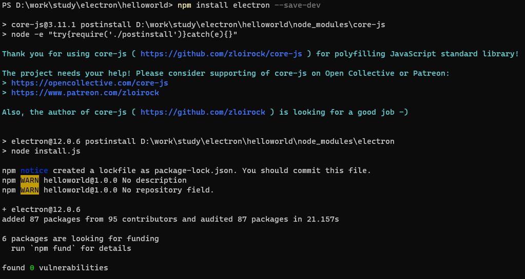Electron으로 화면에 hello world를 표기하는 초간단 프로그램을 개발하는 과정입니다.