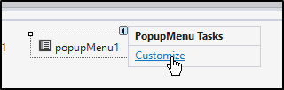 추가된 PopupMenu control의 우측상단 삼각형을 클릭한 후 Customise를 선택 한다.