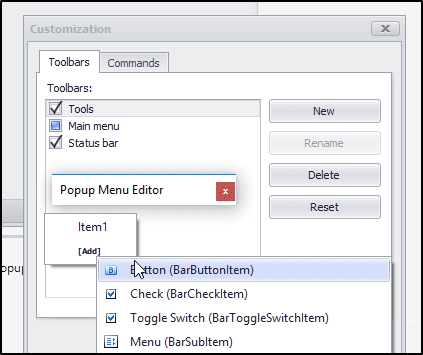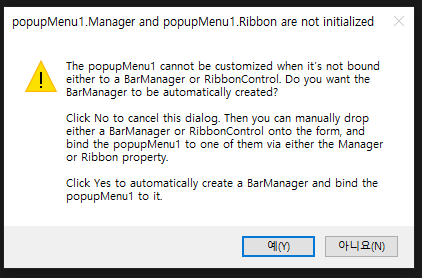 만약 BarManager를 자동으로 생성하고 PopupMenu를 바인딩시킬 지 물어보면 Yes를 클릭한다.