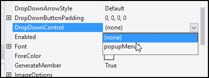 DropDownControl 속성 값으로 PopupMenu control을 선택한다.