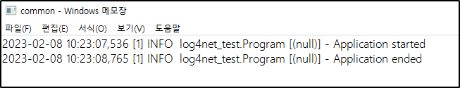 빌드 후 프로그램을 실행 시켜보면 구성파일에서 지정한 로그 파일인 Log\common_log 가 생성되고 로그가 남게 됩니다.
