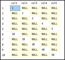 INSERT #temp VALUES(1,2,3,4,5), (10,20,30,40,50)