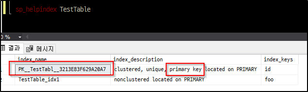 - primary key로 지정된 인덱스 명을 확인 합니다.