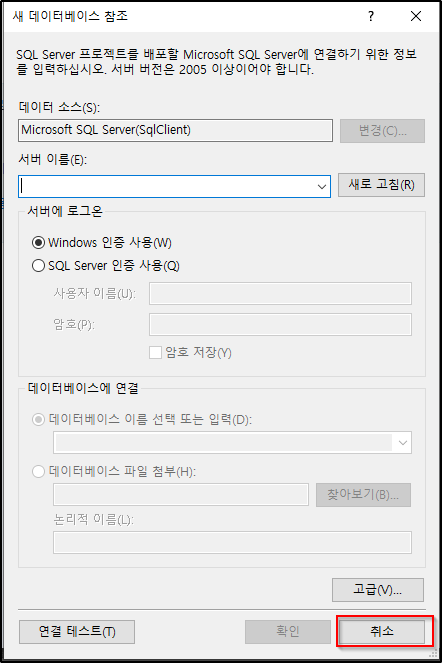 만약 연결된 DB 정보가 없이 참조 추가하려고 하면 다음과 같이 추가가 불가능합니다.