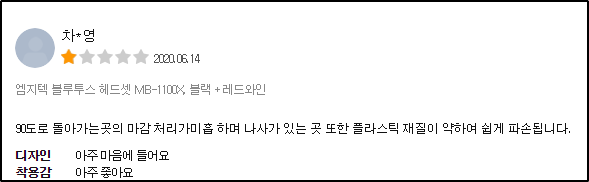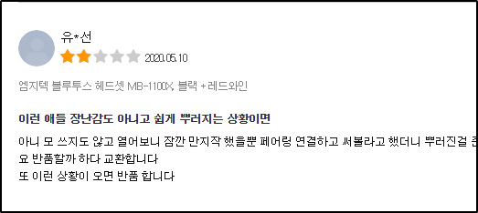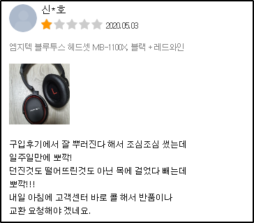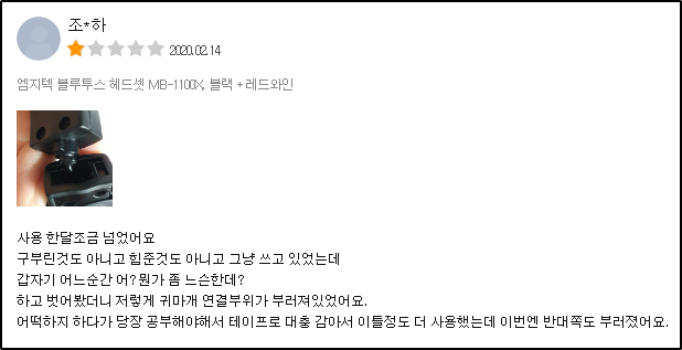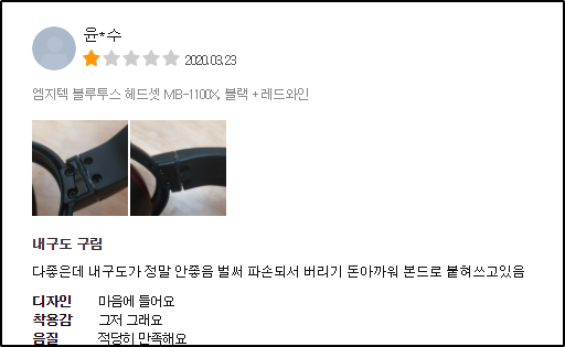 중국산 저가 헤드폰에서도 찾기 힘든 최악의 내구성으로 제품을 만들고 거창하게 광고만 하여 소비자를 기만하는 이런 회사는 더 이상 대한민국에서 없어 졌으면 좋겠습니다.