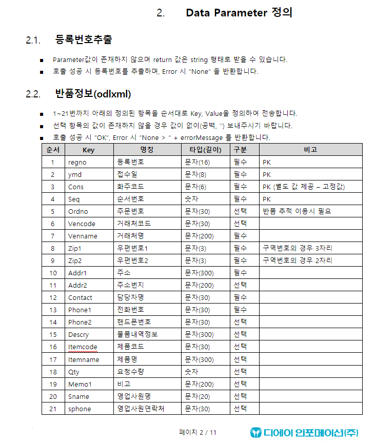 [참고] 용마 반품 연동가이드 문서 일부